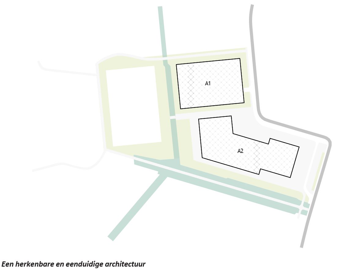 Vanwege de uitzonderlijke schaal, positie en programmering van de nieuwe gebouwen ten opzichte van de omliggende woningbouw heeft het schoolprogramma een bepaalde mate van architectonische vrijheid. Er is niet direct aanleiding voor een architectonische samenhang (materiaal en kleur) tussen de nieuwe gebouwen en de omliggende bestaande woningbouw. Daarbij moet het echter wel rekening houden met de buurt en geen sterke dissonant zijn.
