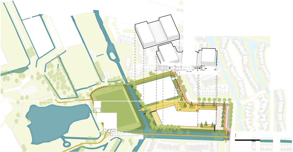De architectuur voegt zich naar de ruimtelijke structuur van het gebied. Een formeel karakter naar de Vijzellaan en een informeel karakter naar de Noordhoekse Wiel, de Achterdijk en de noordelijke buurt. Gevels aan de Vijzellaan begeleiden de weg en hebben voldoende ruimte tot de weg om de bestaande bomen en het fietspad te handhaven. Aan het centrale entreeplein voegt de bebouwing zich naar de voetgangerszone met entreegebieden voor de omliggende programma’s. Subtiele verschillen in de gevel dragen bij aan het maken van karakteristieke overgangen aan elke zijde.