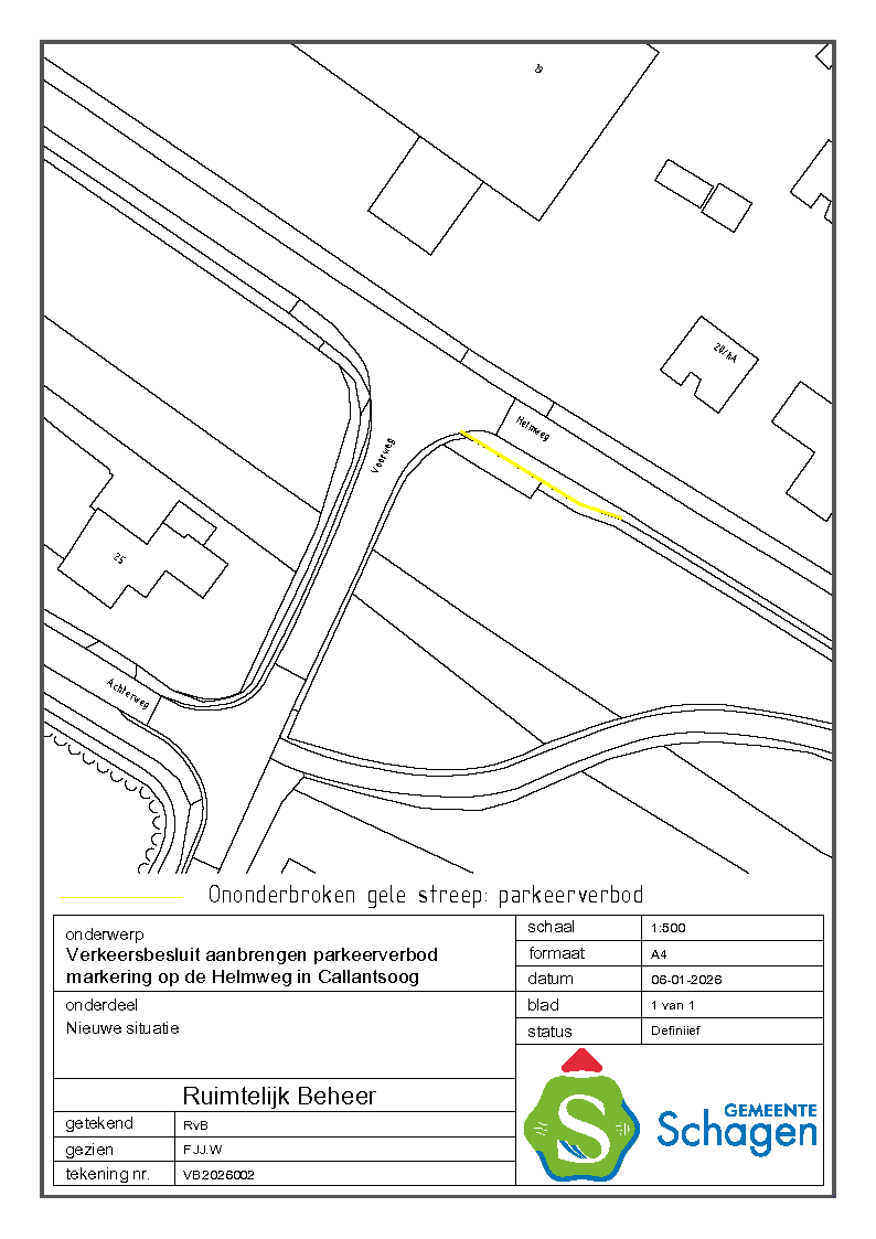 Gemeente Schagen- Verkeersbesluit instellen parkeerverbod (ged.) nabij de Helmweg 19, Callantsoog.