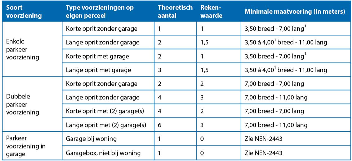 Tabel 5: Parkeren op opritten: minimale maatvoering en rekenwaarden