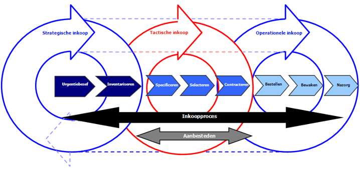 Proces met hoofdstappen ten behoeve van inkopen. De specifieke kenmerken van een inkoop zijn bepalend voor welke wijze en diepgang dit inkoopproces wordt doorlopen.