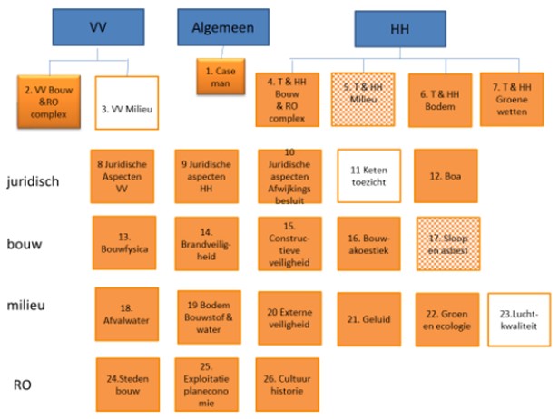 In de Adviesrapportage Kwaliteitscriteria VTH van MasterMeester zijn 26 deskundigheidsgebieden doorlopen en beoordeeld, zie onderstaand figuur.