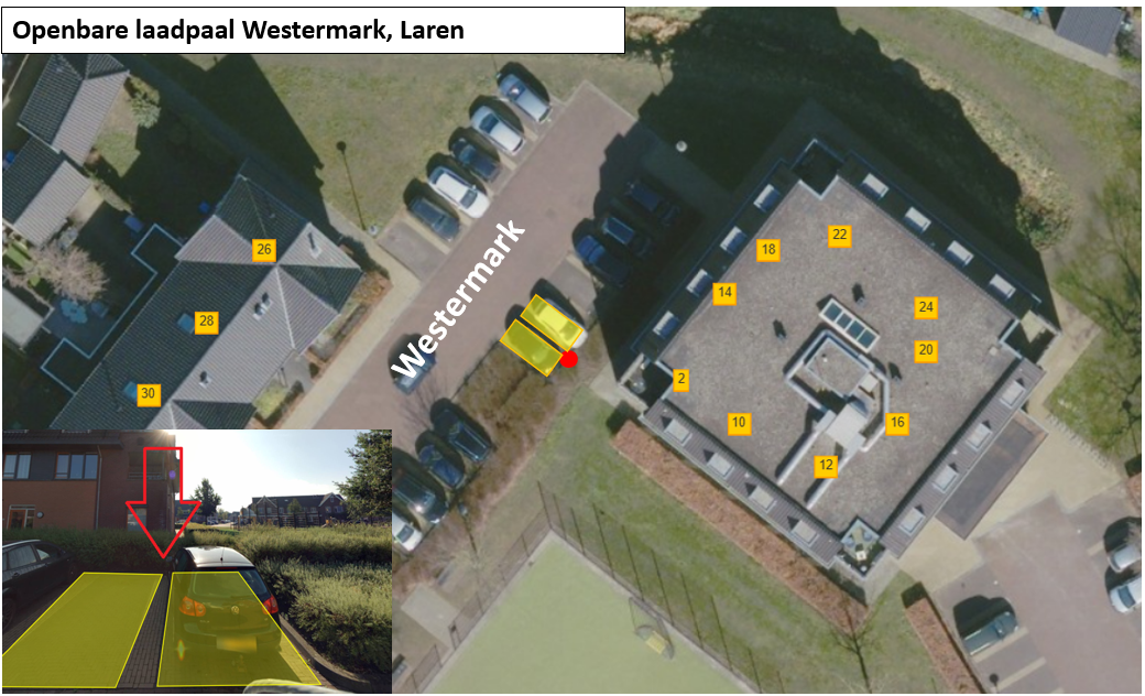 Aanwijzen van parkeerplaatsen voor het opladen van elektrische auto’s aan de Westermark te Laren (ter hoogte van nummer 2)