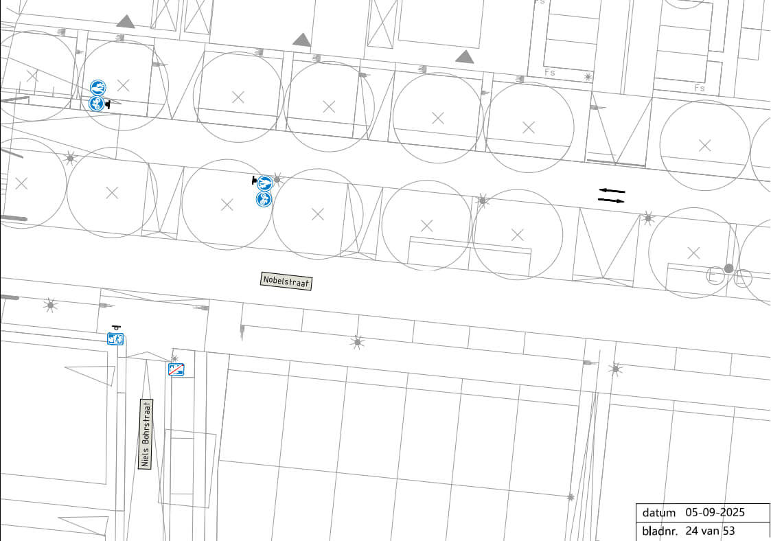 Ter hoogte van de kruising Nobelstraat en Niels Bohrstraat een woonerf in te stellen , alsmede een verplicht voetpad en een verplicht fietspad.