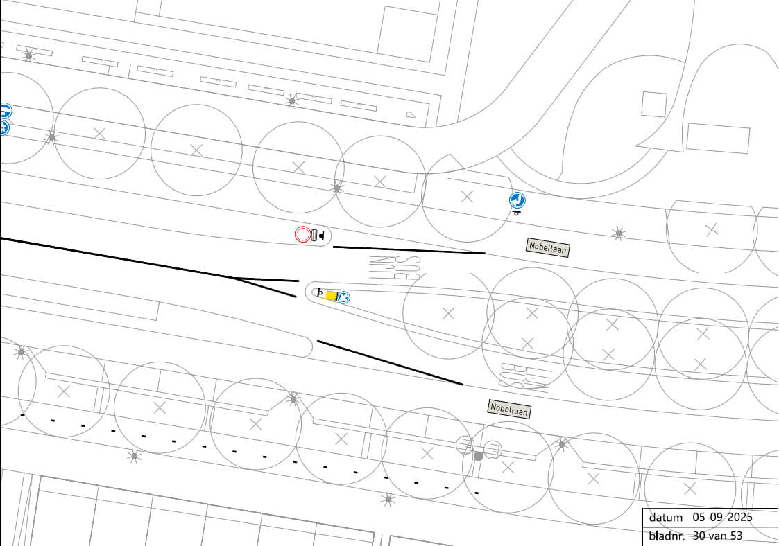 Ter hoogte van de busbaansplitsing Nobellaan toegestane rijrichtingen in te stellen, alsmede een gesloten verklaring, uitgezonderd lijnbussen.