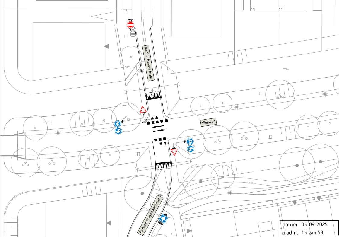 Ter hoogte van de kruising Vinkweg en Richhard Freymanstraat en Nikolaj Bascovstraat een voorrangssituatie in te stellen, alsmede het instellen van een eenrichtingsverkeer, een verplicht voetpad en een verplicht fietspad.