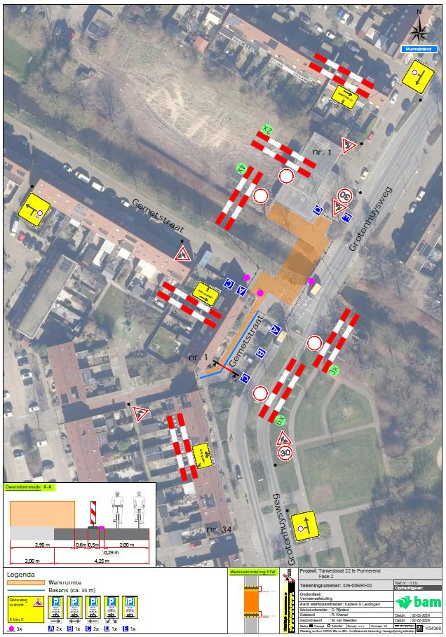 Door middel van het plaatsen van bord E04 met onderbord OB310, met de tekst “Parkeren verboden vanaf 02-03 werkzaamheden wegsleepregeling” tijdelijke parkeerverboden in stellen op de Tarwestraat en de Gemetstraat.