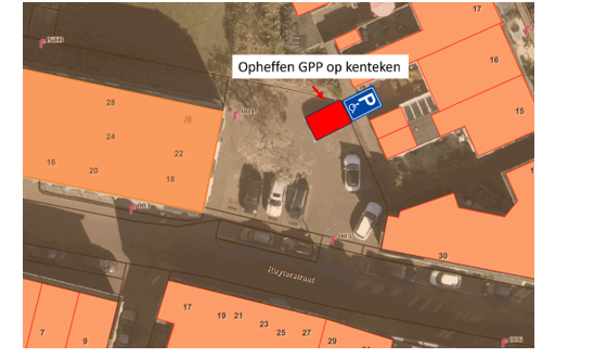 Verkeersbesluit voor het opheffen van een gehandicaptenparkeerplaats op kenteken aan Ruyterstraat te Grave