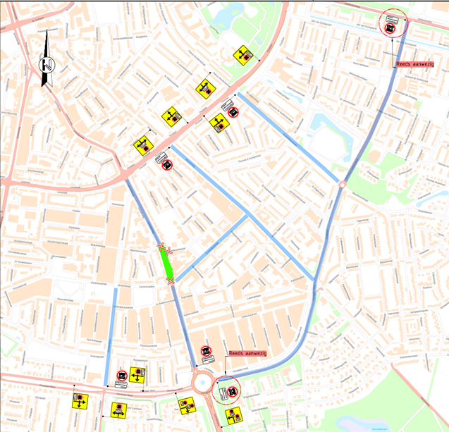 Voor de volgende, tijdelijke inrichtingselementen in het herinrichtingsplan is een verkeersbesluit vereist: