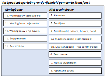 Het figuur op de volgende pagina geeft weer welke categorieën er binnen de gemeente Montfoort worden onderscheiden bij het bepalen van grondprijzen.