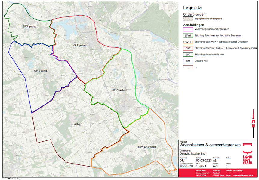Toeristisch platform: is een rechtspersoon, ingeschreven bij de Kamer van Koophandel, gevestigd binnen de gemeente Land van Cuijk, met als doel toeristische vertegenwoordiging in één van de zes gewesten binnen de gemeente Land van Cuijk en deze vertegenwoordigd alle kernen binnen het betreffende gewest;