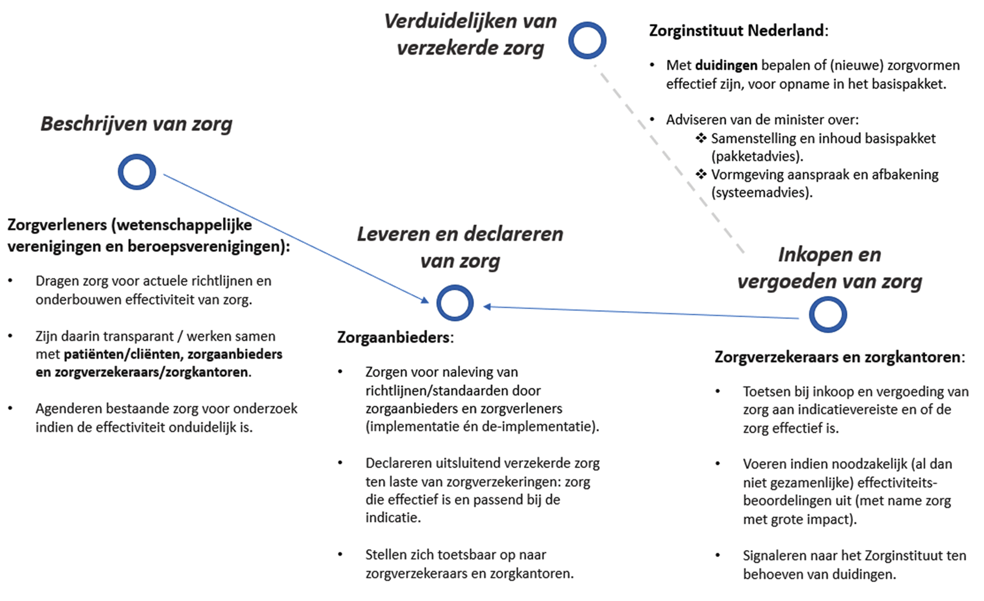 Van zorgverzekeraars en zorgkantoren, zorgverleners, zorgaanbieders, patiënten en cliënten en de overheid verwachten we dat ze bepalen of zorg noodzakelijk, effectief en doelmatig is. Het is belangrijk dat partijen weten wat er van hen verwacht wordt zodat zij hun taken goed uit kunnen voeren. Dat vraagt om heldere spelregels, als onderdeel van een beter pakketbeheer.