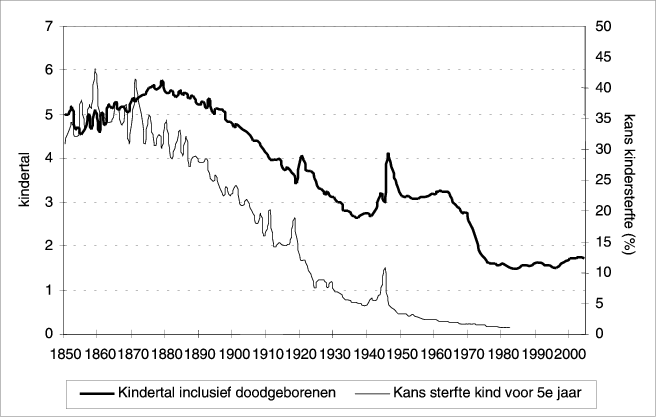 Figuur 1: Kindertal en kindersterfte, 1850–2004