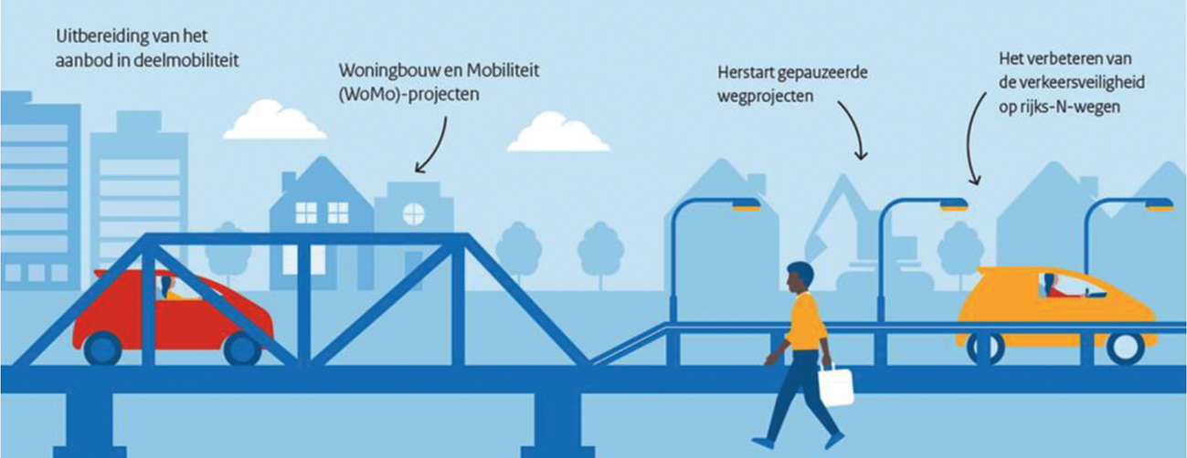 De vraag naar nieuwe woningen is groot. Er wordt de komende jaren daarom veel gebouwd. Om die woningen bereikbaar te maken en te houden wordt geïnvesteerd in (weg)infrastructuur en slimme mobiliteitsoplossingen. Daarbij zetten we ook in op de groei van autodelen, het ontwikkelen van mobiliteitshubs waar verschillende modaliteiten samenkomen en starten we pilots met hoogwaardige, snelle bussen (Bus Rapid Transit) die gebruik maken van de snelwegen. Zo vergroten we de keuze voor de reiziger.