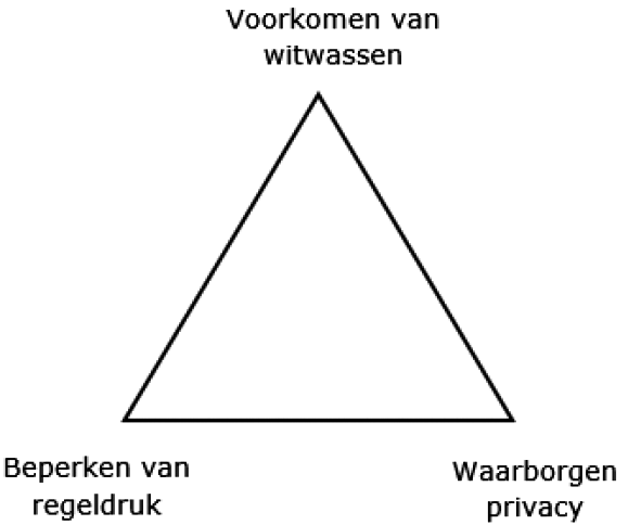 Een nieuwe belangenafweging is nodig om uit de huidige impasse te komen. Binnen de anti-witwasaanpak concurreren drie belangen met elkaar: (1) het voorkomen van witwassen, (2) de regeldruk voor zowel poortwachters als klanten en (3) de privacy van particulieren en ondernemers die gebruik maken van diensten van financiële instellingen.