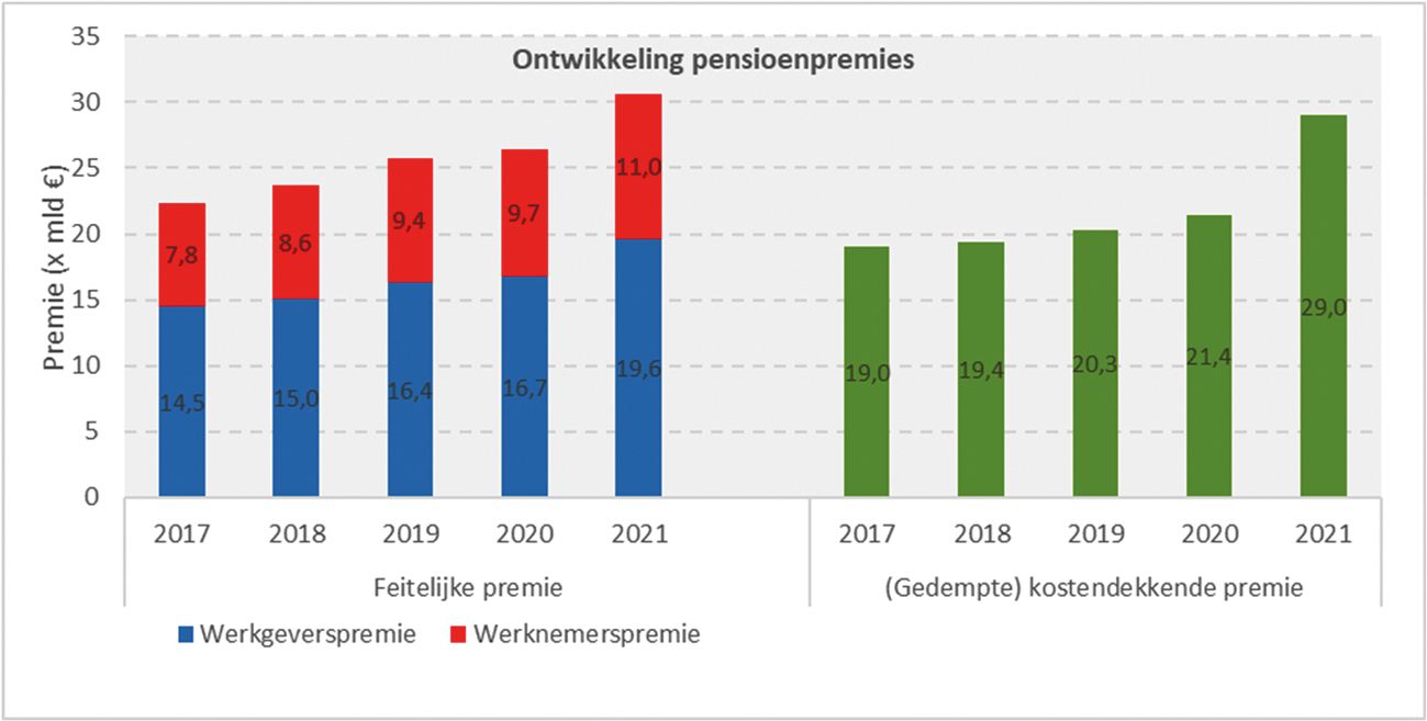 Ontwikkeling pensioenpremies in de periode 2017 tot en met 2021
