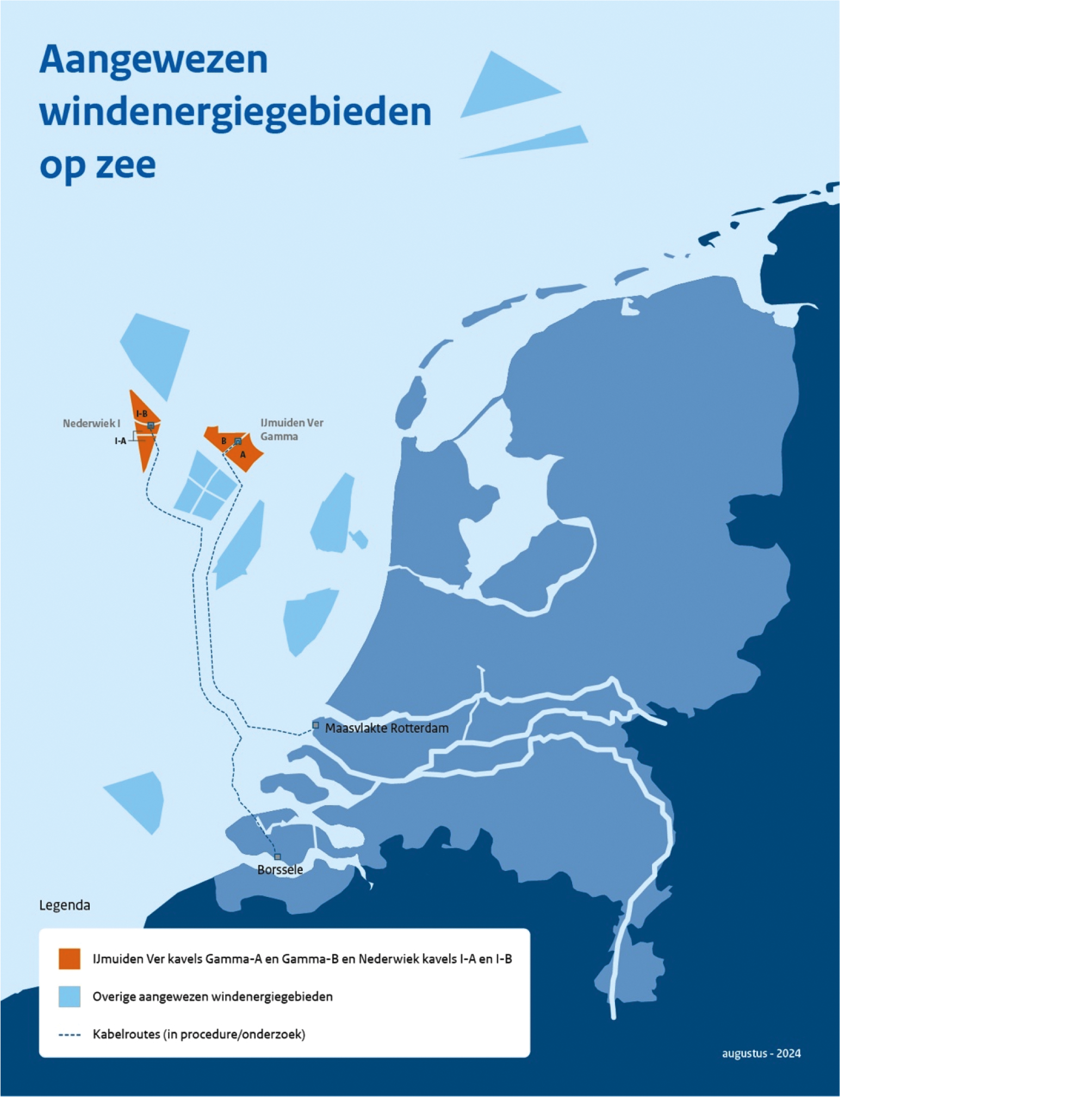 Daarnaast heeft het kabinet deze maand de ontwerpkavelbesluiten en de concept-tenderregelingen voor de windparken IJmuiden Ver Gamma-A en Gamma-B en Nederwiek 1-A gepubliceerd.