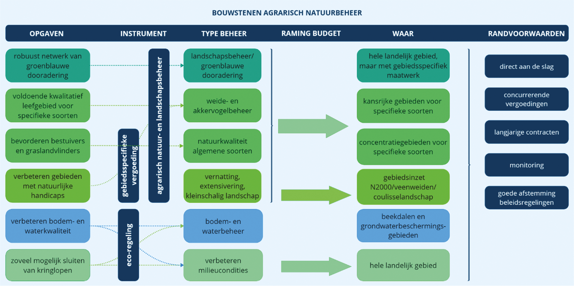 Ik licht hieronder een aantal belangrijke instrumenten toe die deel uit kunnen gaan maken van het nieuwe stelsel van Agrarisch Natuurbeheer. Bij de keuze voor deze instrumenten is gezocht naar een balans tussen een realistisch verdienmodel voor agrarische ondernemers en doelbereik. Ik vind het belangrijk dat deelname aan dit stelsel op basis van vrijwilligheid gebeurt. Het leveren van een bijdrage aan de doelen is daarvan afhankelijk.