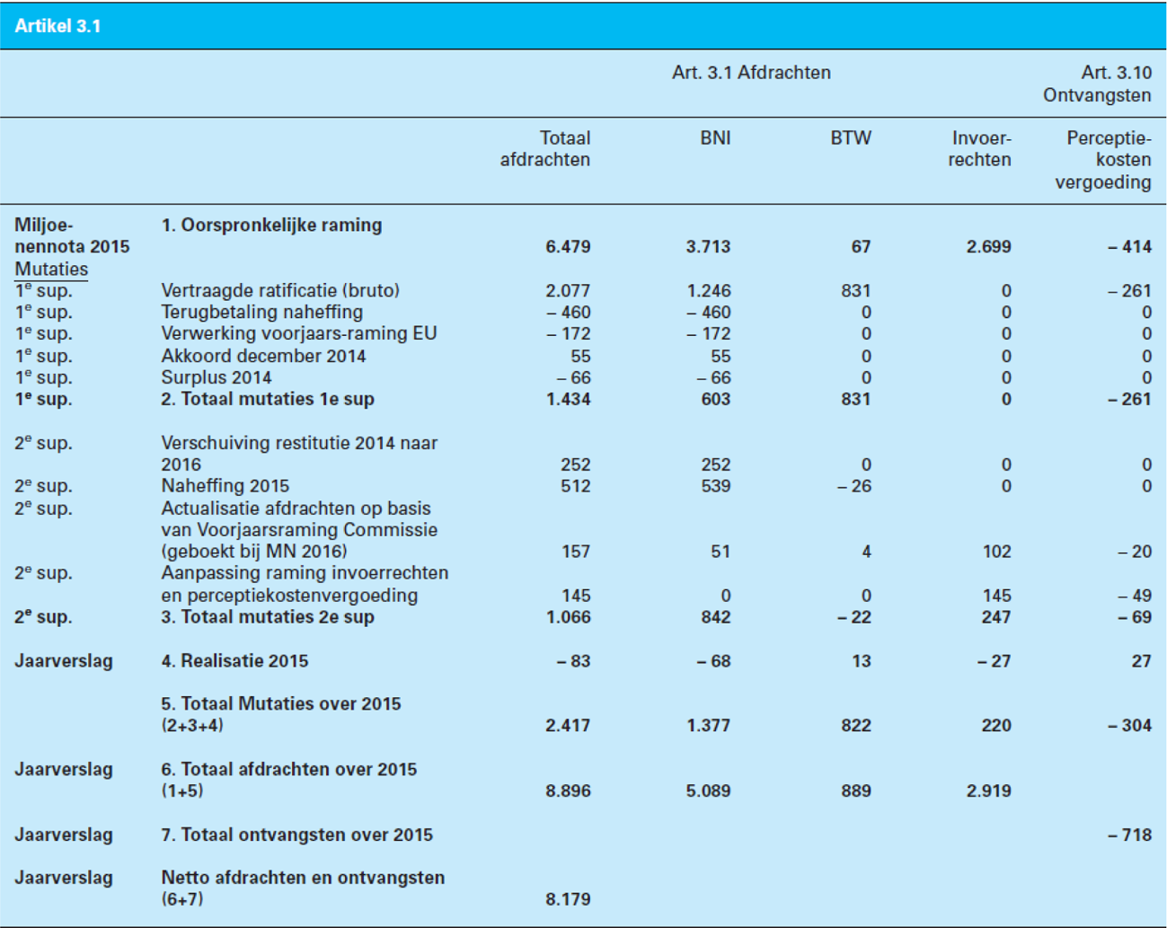Netto afdrachten = BNI-afdracht + BTW-afdracht + invoerheffingen – perceptiekostenvergoeding.