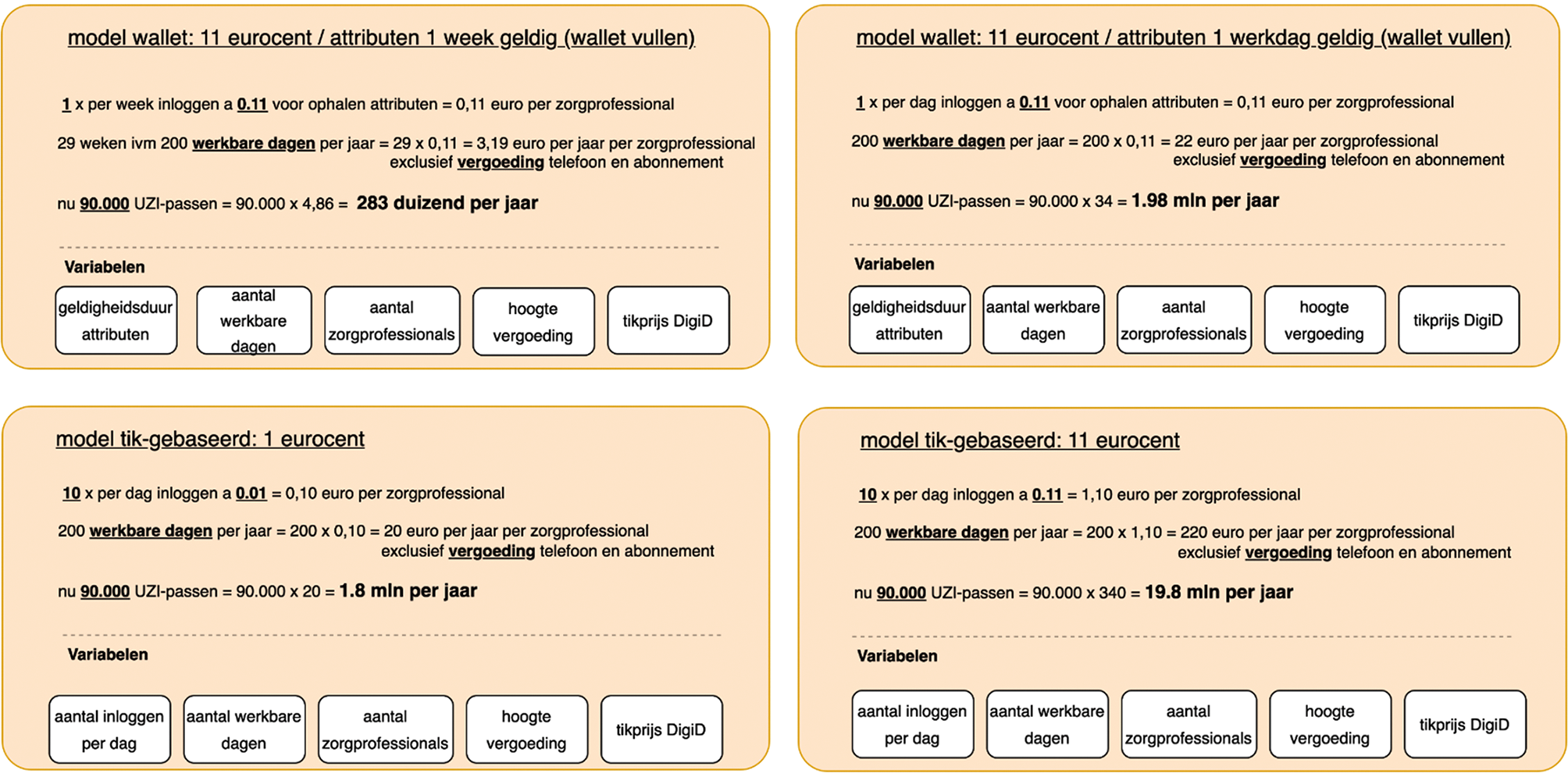In de toelichting is een ruwe kosteninschatting opgenomen van de financiële gevolgen van dit wetsvoorstel die nader onderzocht worden. De verwachting is dat de totale kosten die een zorgaanbieder kwijt is voor de authenticatie van de zorgmedewerkers zullen afnemen. Wanneer de middelen breder gebruikt worden, hoeft dat dus niet tot hogere verbruikskosten te leiden. Daarnaast kunnen andere methoden van inloggen die in het applicatielandschap van de zorgaanbieder voorkomen, vervangen worden door één oplossing. Dit spaart kosten uit van bijbehorende authenticatiemiddelen en taken en ondersteunende processen gericht op de (ICT-)ondersteuning van zorgmedewerkers gericht op die inlogmethoden.