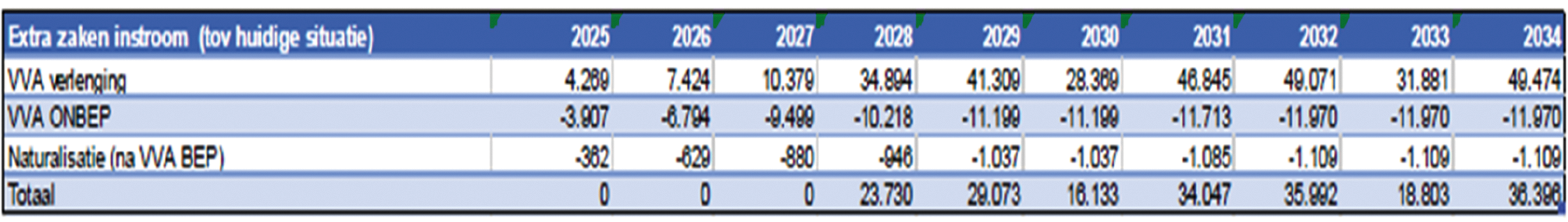 Hieronder is een tabel opgenomen met de extra verlengingsaanvragen die per jaar verwacht worden tot 2034.