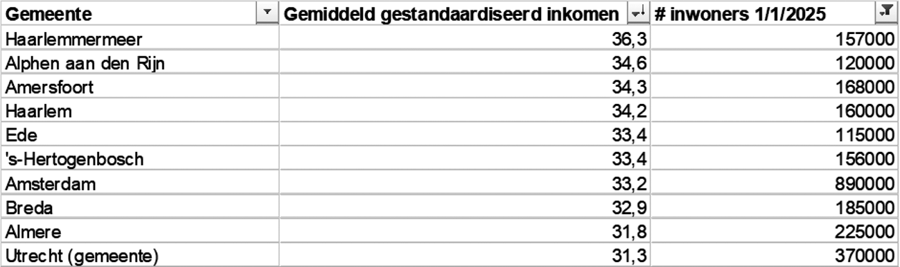 Aangezien er slechts 26 gemeenten in Nederland zijn met meer dan 100.000 inwoners, is ervoor gekozen de top 10 te selecteren om een vergelijk te kunnen maken.