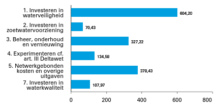 Het Deltafonds wordt voor het grootste deel gevoed door een bijdrage uit de beleidsbegroting van IenW (artikelonderdeel 26.02). Daarnaast worden voor een aantal projecten uitgaven doorberekend aan derden, zoals andere departementen, lagere overheden, buitenlandse overheidsinstanties en de Europese Unie.