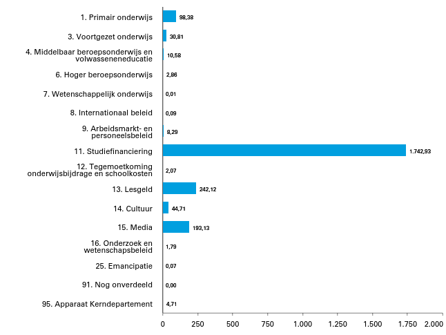 2. op artikel 95 (Apparaat Kerndepartement) worden de apparaatsuitgaven van het kerndepartement, de apparaatskosten van de inspecties en adviesraden, baten-lastenagentschappen en een aantal zbo's en rwt's verantwoord.