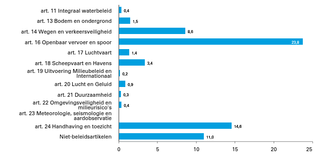 In de begroting van 2023 is naar aanleiding van het Wetgevingsoverleg Begrotingsonderzoek (WGO) jaarverslag 2021 van 23 juni 2022 voor het artikel 14 ‘Wegen en Verkeersveiligheid’ een pilot opgesteld ter bevordering van de informatiewaarde en leesbaarheid van de begroting. In de begroting 2024 is hierop een volgende stap gezet, waarbij de pilot tevens is uitgebreid naar artikel 21 'Circulaire Economie'. De voorliggende verantwoording 2024 volgt de opzet van de begroting 2024.