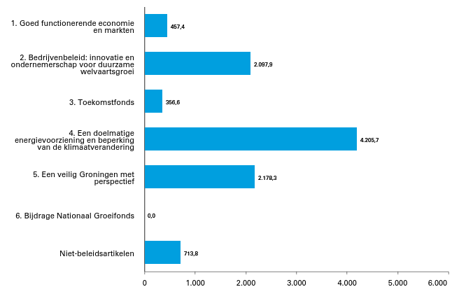 Figuur 2 Gerealiseerde ontvangsten verdeeld over beleidsartikelen en niet-beleidsartikelen (x € 1 mln). Totaal € 6.766,5 mln.