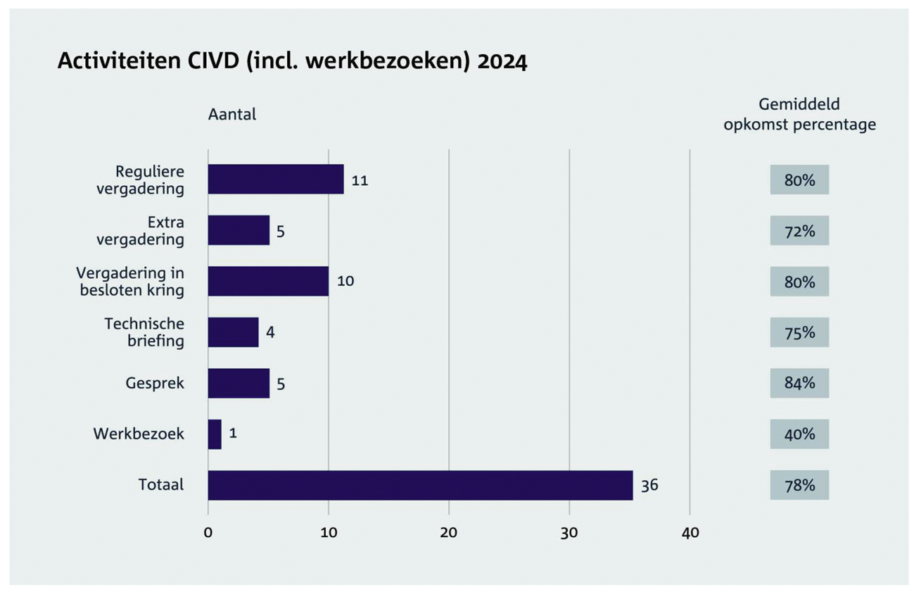 Onderstaande afbeeldingen beschrijven de werkzaamheden en activiteiten van de CIVD in 2024.