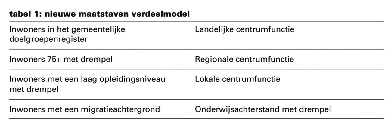 In de onderstaande tabel is weergegeven welke nieuwe verdeelmaatstaven het verdeelmodel bevat. In de artikelsgewijze toelichting is een toelichting gegeven bij elke afzonderlijke maatstaf.».