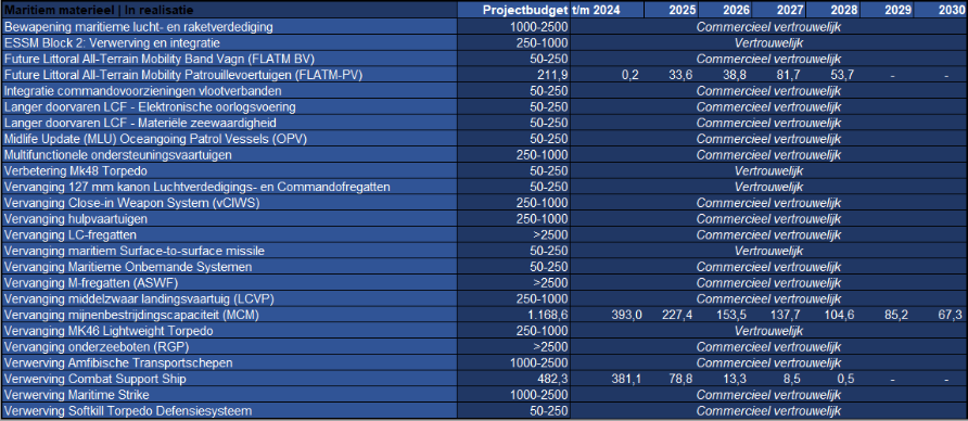 Alle nieuwe investeringsprojecten waarvoor een A-brief is verzonden met een projectbudget van meer dan € 250,0 miljoen worden apart benoemd. Daarnaast worden alle projecten in realisatiefase met een projectbudget van meer dan € 50,0 miljoen per artikel in een tabel opgenomen die inzicht geeft in de budgetreeksen op projectniveau. In de (reguliere) budgettaire tabel wordt een onderscheid gemaakt naar drie fasen: de voorbereidingsfase, de onderzoeksfase en de realisatiefase. Het projectbudget bestaat uit de onderzoekskosten, de basisraming en de risicoreservering. Voor projecten in voorbereidingsfase wordt de behoeftestelling uitgewerkt. Er is in de voorbereidingsfase nog sprake van flexibiliteit in de programmering van de projecten; voor de besteding van deze budgetten zijn nog geen juridisch of bestuurlijk bindende afspraken gemaakt. Voor de Defensie Materieelproces (DMP) plichtige projecten worden de A-brieven naar de Kamer verzonden. De kern van de A-brief is een functionele beschrijving van de capaciteit die Defensie wil verwerven.