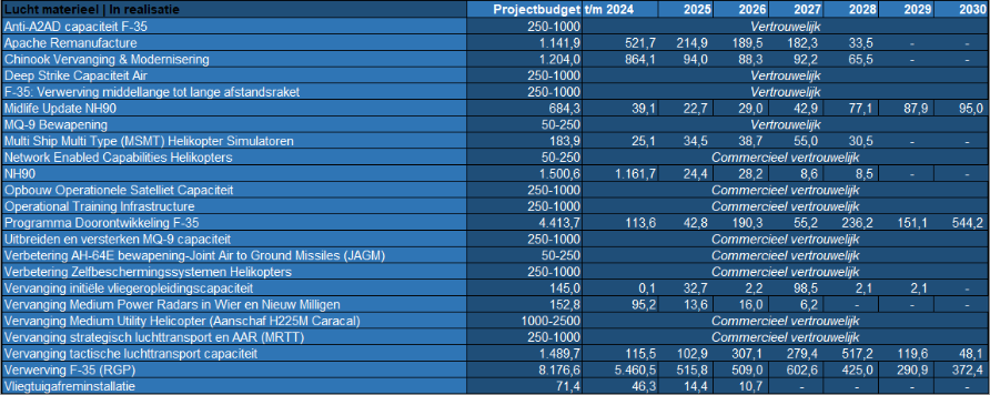 – Levering van F-35 toestellen. Hiermee zijn alle toestellen geleverd tot aan de aanvullende behoefte vanuit de Defensienota 2024;