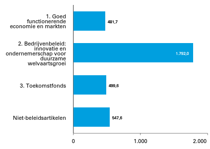 Figuur 1 Geraamde uitgaven verdeeld over beleidsartikelen en niet-beleidsartikelen (bedragen x € 1 mln). Totaal € 3.320,9 mln.