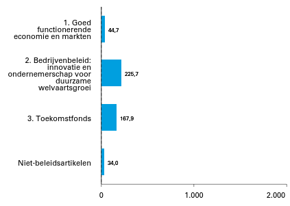Figuur 2 Geraamde ontvangsten verdeeld over beleidsartikelen en niet-beleidsartikelen (bedragen x € 1 mln). Totaal € 472,3 mln.
