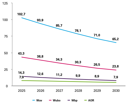 In het normvermogen is gecorrigeerd voor maatregelen die leiden tot een ander kasritme van de inkomsten en uitgaven van het fonds zonder dat de onderliggende opbrengsten of zorgkosten veranderen. Deze correctie voorkomt dat een ander kasritme van betalingen leidt tot stevige fluctuaties in de premie. Ten eerste is het normvermogen verlaagd in verband met uitgestelde IAB-afdrachten. Werkgevers konden in de coronacrisis hun belasting- en premie afdrachten uitstellen. Dit zorgt ervoor dat het zorgverzekeringsfonds een deel van de IAB-ontvangsten uit 2020 tot en met 2022 pas ontvangt in de kas in latere jaren. Om stevige fluctuaties in de premie te voorkomen, is in het normvermogen gecorrigeerd voor dit andere kasritme. In het normvermogen is rekening gehouden met dat er vanaf 2024 nog € 927 aan uitgestelde betalingen kasmatig worden ontvangen. Voor 2024 en 2025 is de IAB-raming al gecorrigeerd voor dit effect. Ten tweede is het normvermogen gecorrigeerd voor kasmatige effecten in de uitgaven sinds de start van de Zvf. Deze correcties zijn het gevolg van de introductie van dbc’s in de ggz in 2008 (-€ 1.637 miljoen), de introductie van dbc’s in de geriatrische revalidatie in 2013 (- € 83 miljoen), het afschaffen van dbc’s in de jeugd-ggz bij overheveling naar de gemeenten in 2014 (+€ 346 miljoen), de dbc-duurverkorting in de MSZ in 2015 (+ € 685 miljoen), de afschaffing van de dbc’s in de ggz in 2021 (+ € 1.247 miljoen) en de kas/transactiehobbel bij de grens overschrijdende zorg (- € 270 miljoen). Cumulatief heeft dit een effect van ‒ € 639 miljoen op het normvermogen.
