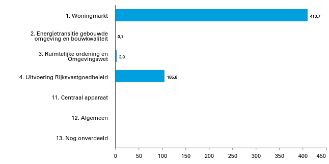In de beleidsartikelen staan de beleids- en de financiële informatie over de voorgenomen uitgaven. De begroting van het ministerie van VRO bevat vier beleidsartikelen:
