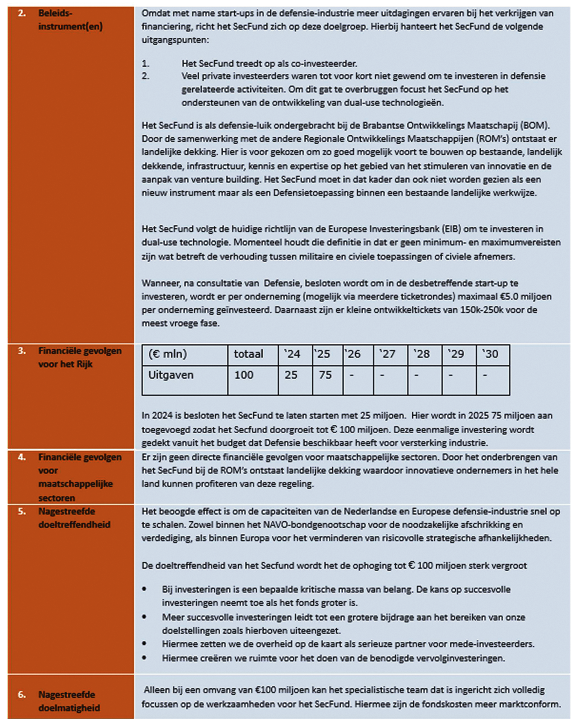 Bij de Kamerbrief Actieagenda productie- en leveringszekerheid munitie en defensiematerieel (Kamerstuk 36410 nr. 93) is melding gemaakt van het op te richten Security Fund (SecFund) met een omvang van € 25 miljoen voor innovatieve Nederlandse startups in de defensiemarkt, inclusief een CW 3.1 kader. Nu wordt besloten tot het ophogen van het SecFund tot € 100 miljoen. Derhalve ontvangt u hierbij een update van het CW 3.1 kader gebaseerd op de huidige stand van zaken.