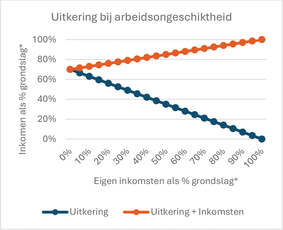 Voorbeeld 2: een ander voorbeeld is de situatie waarin een private arbeidsongeschiktheidsverzekering tot uitkering komt terwijl de publieke verzekering dat niet zou doen. Dat zal het geval zijn wanneer de verzekerde nog wel het wettelijk minimumloon kan verdienen maar volgens het in de private verzekering gebruikte arbeidsongeschiktheidscriterium toch arbeidsongeschikt is. In die situatie staat het de verzekeraar vrij om voorwaarden op te nemen die onder het minimale dekking-vereiste van de opt-out vallen. Zolang maar gegarandeerd wordt dat als de zelfstandige door arbeidsongeschiktheid niet langer het wettelijk minimumloon kan verdienen, wordt voldaan aan het genoemde minimale dekking-vereiste van de opt-out.