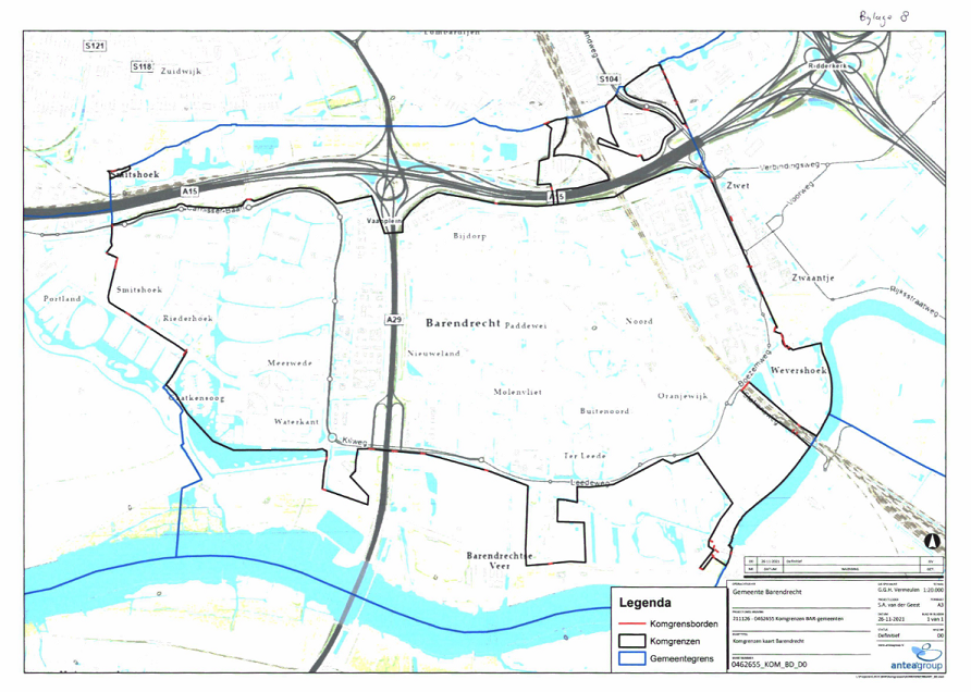 dat de gemeente Barendrecht sinds de vorige actualisatie van haar bebouwde komgrenzen laatstelijk vastgesteld door burgemeester en wethouders d.d. 18 december 2000 doorgegroeid is qua ruimtelijke ontwikkeling;