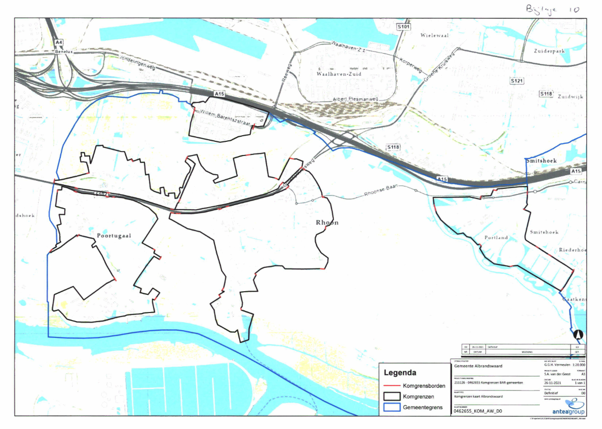 dat bij hun besluit van 23 november 1993, kenmerk VV-50616/30551/1, voor de toepassing van de Wegenwet de grenzen van de bebouwde kommen van Poortugaal, Poortugaal-Noord, Rhoon en Distripark zijn vastgesteld;