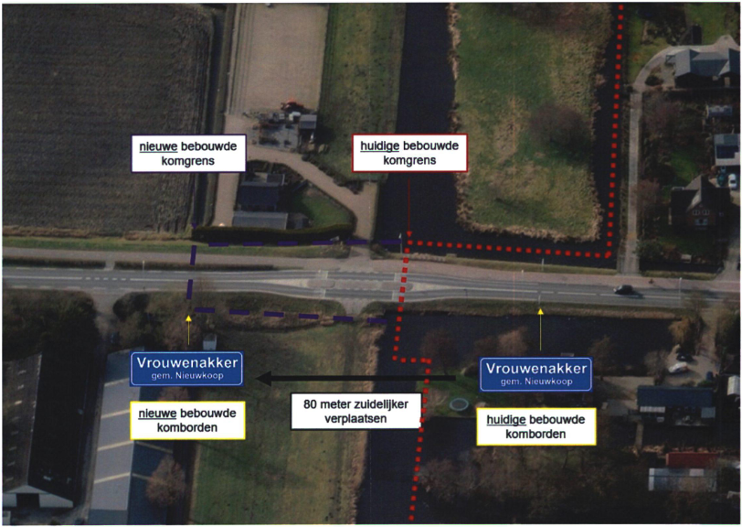 Onder wijziging van bebouwde kom kaart Vrouwenakker, nr. 10 uit hun ter zake bestaande besluit nummer PZH-2021-766119503/DOS-2020-0008906, de grens van de bebouwde kom van de gemeente Nieuwkoop, respectievelijk de kern Vrouwenakker, vast te stellen krachtens artikel 27, 2e lid van de Wegenwet, overeenkomstig eerdergenoemd raadsbesluit, voor zover gelegen binnen de paarse contourgrens zoals aangegeven op bijbehorende overzichtskaart (bijlage 1).