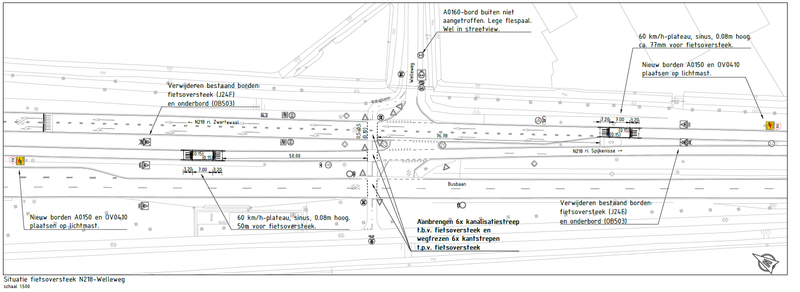 In de gemeente Nissewaard bevindt zich op de kruising N218 met de Welleweg (ter hoogte van 7.7 hmp) een (brom)fietsoversteek. Deze oversteek vormt een onderdeel van de doorgaande fietsverbinding tussen de kern Heenvliet en Brielle/Hellevoetsluis. Daarnaast wordt de oversteek ook gebruikt voor fietsers van en naar de bushalte die zich direct ten noorden van de kruising, op de parallelweg bevindt. Om de fietsoversteek veiliger te maken, maar ook het afslaan richting de Welleweg op een veiligere manier mogelijk te maken wordt een snelheidsverlaging, 50 km/h, ingesteld op de kruising. Voor deze maatregel is een verkeersbesluit benodigd.