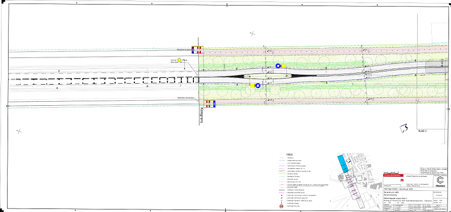 km 2.200, worden middengeleiders aangebracht. Deze verhogen de attentiewaarde van het verkeer op de hoofdrijbaan voor de nieuwe situatie. De middengeleiders worden voorzien van borden model D2 van bijlage 1 van het RVV 1990.