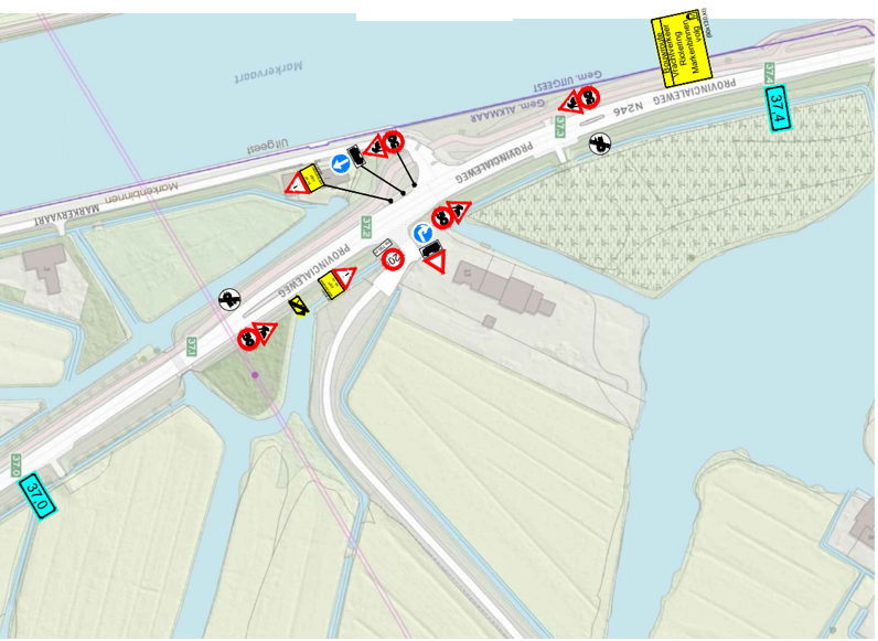 Verkeersbesluit tot het tijdelijk instellen van een maximumsnelheid van 50 km/u en diverse andere verkeersmaatregelen op N246 tussen HMP 37.0 en 37,3 te gemeente Alkmaar (Markenbinnen)