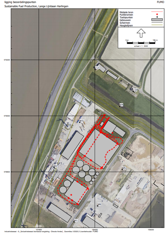 De veroorzaakte geluidsbelasting in de omgeving en de perioden waarin deze optreedt, is in kaart gebracht in een akoestisch rapport Akoestisch onderzoek industrielawaai Sustainable Fuel Production BV Lange Lijnbaan ong. te Harlingen, rapportnummer 220-HLL-il-v5 door M&A omgeving BV, datum 8 juli 2021.