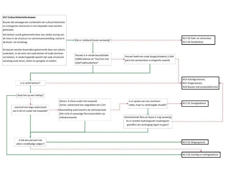 Veel terreinen die als hakhout begrensd waren voldoen niet aan het criterium van ouderdom of het criterium van constant specifiek hakhoutbeheer. Door analyse van de gegevens van de 4e bosstatistiek uit de jaren 80 is bepaald welke percelen voldoen qua ouderdom. Alleen als een perceel in die bosstatistiek is aangegeven als “oud bos met hakhoutbeheer” is het als hakhout op de beheertypenkaart opgenomen. Alle overige terreinen zijn als droog of als nat bos met productie opgenomen. Gebleken is, dat op basis van dit criterium soms percelen onterecht zijn “omgekat” terwijl ze wel aan de criteria van oud hakhout voldoen. De bosstatistiek blijkt iets te grofschalig om volledig betrouwbaar te zijn op perceelniveau. Op basis van een onderbouwde zienswijze kunnen percelen die onterecht zijn “omgekat” weer als hakhout op de beheerkaart worden opgenomen. Hierbij wordt onderstaand figuur 4 Stroomschema gebruikt.