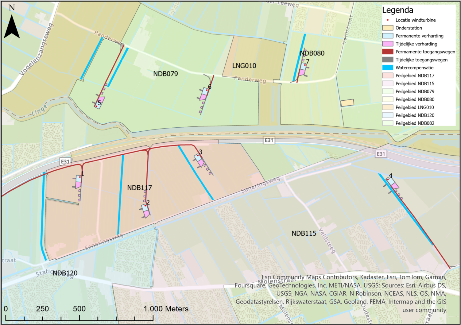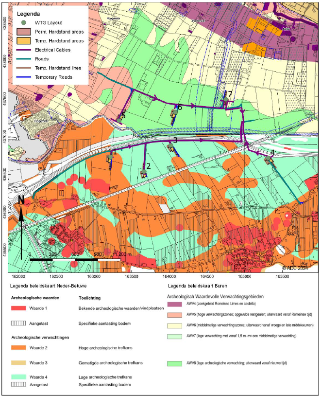 Op de locaties aangewezen als windturbine - middelpunt mast worden zeven windturbines gerealiseerd, waarvan drie in de gemeente Buren (respectievelijk windturbine 5, windturbine 6, windturbine 7) en vier in de gemeente Neder-Betuwe (respectievelijk windturbine 1, windturbine 2, windturbine 3, windturbine 4) (zie Afbeelding 3).