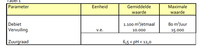 De in voorschrift 3.3.1 genoemde controle betreft de hoeveelheid te lozen afvalwater per uur en per etmaal alsmede de volgende van de in voorschrift 3.1.3 genoemde parameters gemeten in een debietsproportioneel etmaalmonster (Kjeldahl-stikstofgehalte, CZV, BZV/N, P. P/v.e., vuilvracht, zuurgraad in pH gemeten).
